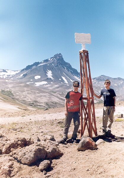 Javier y Pablo en el hito fronterizo del Paso Pehuenche |
