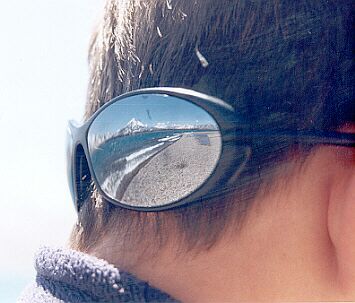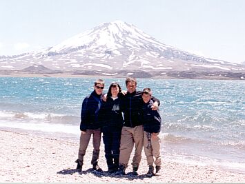Apenas llegados a la Laguna con el Volcán de fondo. |
