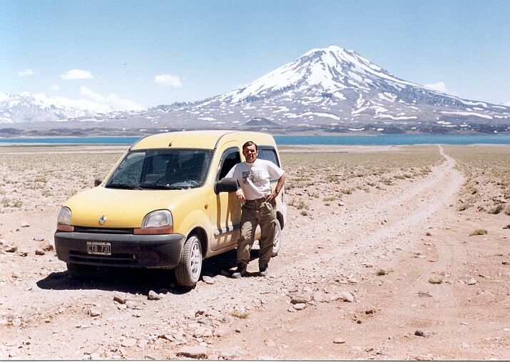 Vista de la Laguna y el Volcán. Homenaje al Kangoo que nos permitió llegar |