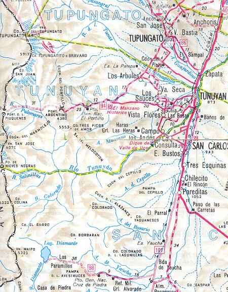 | Mapa de la zona (Escaneado de la carta de la Provincia de Mendoza del ACA) |