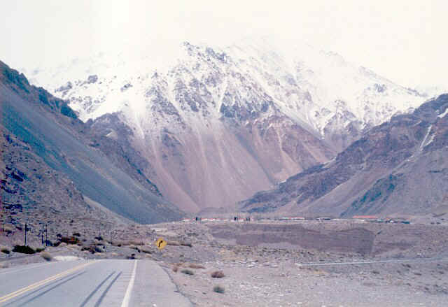 de Uspallata la ruta dobla a la izquierda y se dirige al oeste, presentando