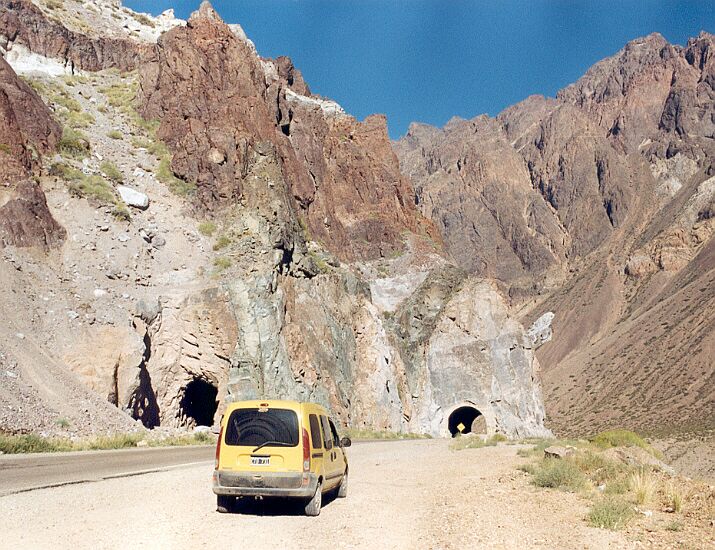 Túneles en la RN 7. El túnel de la derecha es para el tránsito vehicular y el túnel de la izquierda era utilizado por el ferrocarril. |
