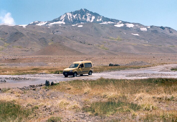 Una subida que no era muy pronunciada pero que tenía ripio flojo me hizo quedar en el medio de la pendiente. Dimos marcha atrás unos 100 mts, se bajaron los pasajeros y a intentarlo nuevamente. Otro fracaso y cuando ya pensábamos en hacer unos 3 km de trekking retrocedí unos 300 mts y como el camino estaba bueno pude tomar impulso y con el Kangoo en 2da velocidad y llegando a 50 km/h, pude subir. ¡ Qué ganas de tener un vehículo 4x4 !