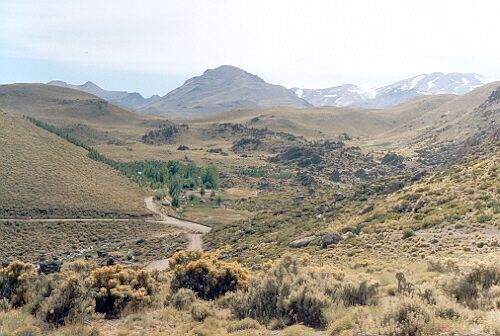 Se obtienen vistas soberbias de la parte norte de la Cordillera del Viento con su montaña vedette: el Domuyo.