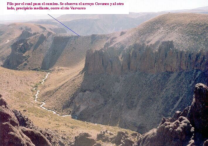 Seguimos “disfrutando” del camino y una fuerte subida, seguida de una curva cerrada, nos coloca sobre un tramo recto que presenta una particularidad: precipicio a ambos lados ya que a la izquierda corre el río Varvarco y a la derecha el arroyo Covunco.