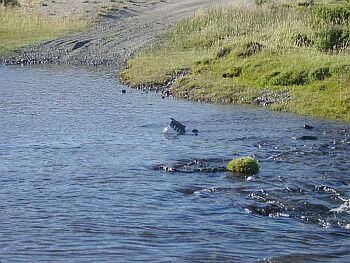 Encaramos el cruce en primera y cuando noté que la corriente era bastante fuerte aceleré y escuché un ruído a tracción sobre alguna piedra. Salimos sin problemas y continuamos viaje hasta el hito que se encuentra sobre una pampa.