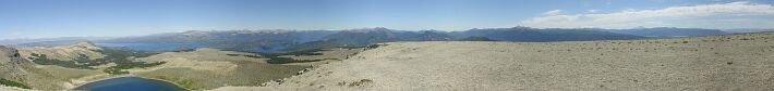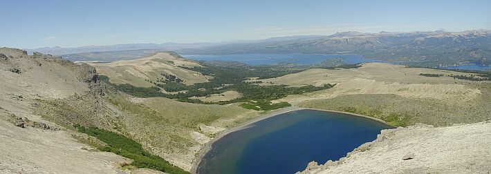 | Vista panorámica desde la cima del Batea. En la imagen ampliada se visualizan volcanes chilenos y argentinos | |