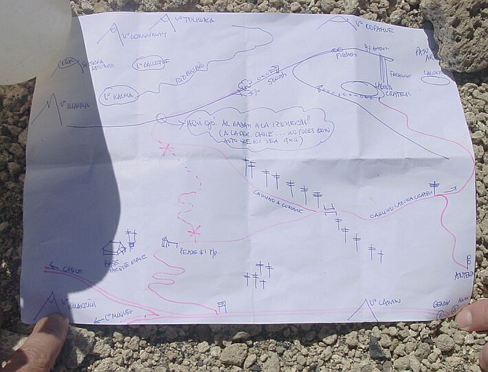 Croquis con ubicación de los principales puntos a visitar y volcanes a observar en la zona del Batea |