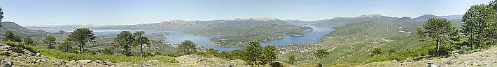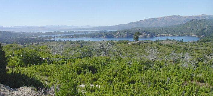 A izquierda se distingue el lago Aluminé y a derecha el lago Moquehue |