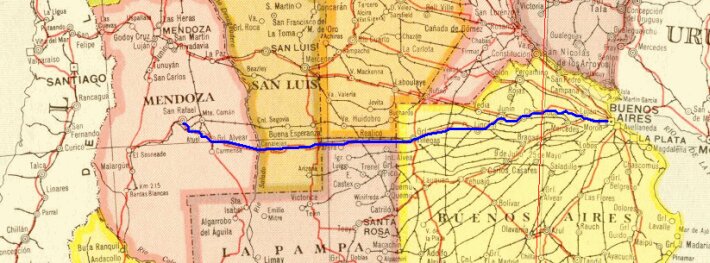 Viajamos por la RN 7 hasta la ciudad de Junín y luego tomamos la RN 188 con rumbo a Gral Alvear.