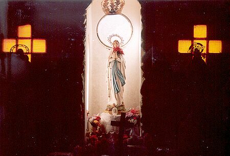 Virgen de Lourdes. Foto tomada a través del vidrio de la puerta |