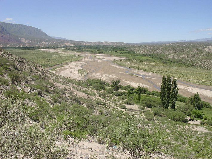 las cumbres Calchaqués al noroeste, a 1990 msnm. Tiene aproximadamente 15000