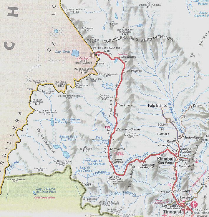 Fiambalá hasta el Paso Internacional hay aproximadamente 200 km, de los cuales
