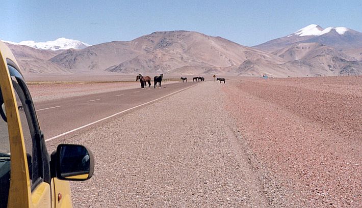 algún tramo del camino, un "piquete" de equinos interrumpe nuestro