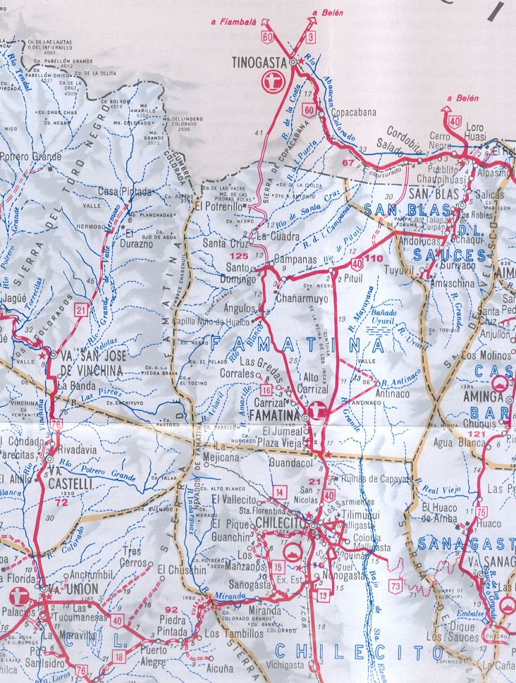 La geografía montañosa del noroeste riojano y la consiguiente ausencia de rutas nos obligaría a dar un gran rodeo para llegar hasta Tinogasta, punto de partida para el Paso de San Francisco.