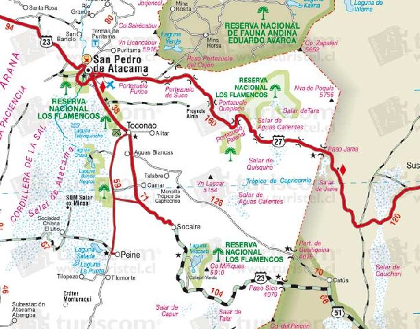 Nos vamos a Calama, ciudad distante 100 km hacia el Oeste.
