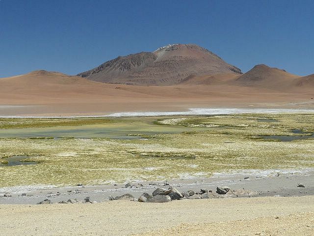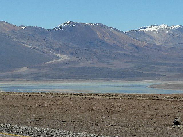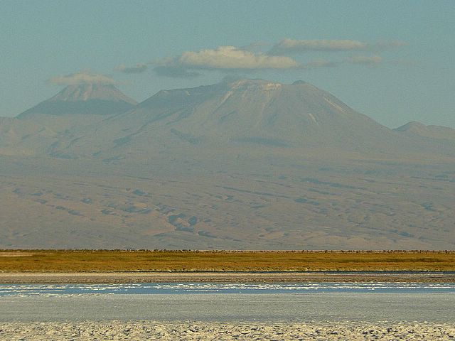 El Volcán Licancabur, uno de los picos emblemáticos de la zona, se yergue