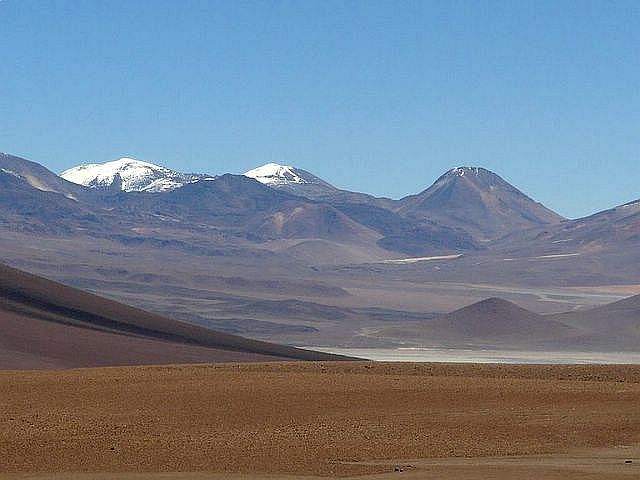 pega muy fuerte: estamos en medio del desierto. Los volcanes detrás agregan