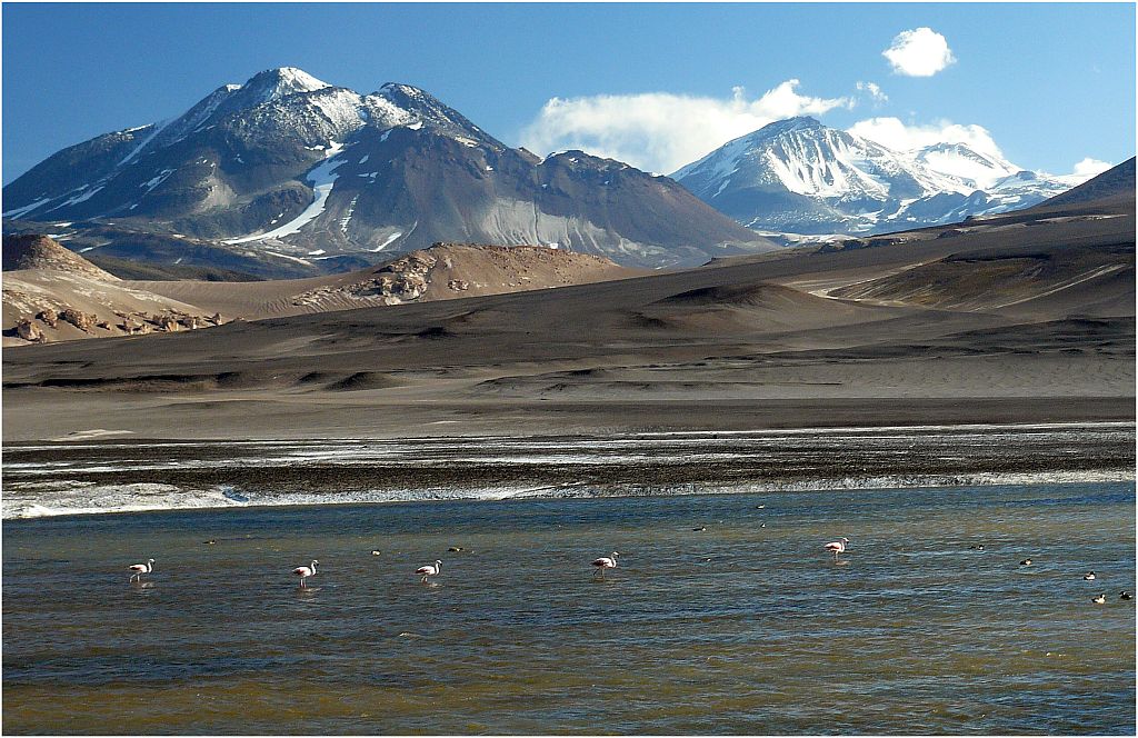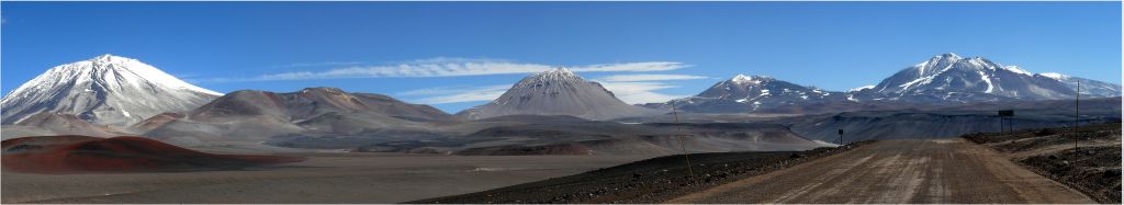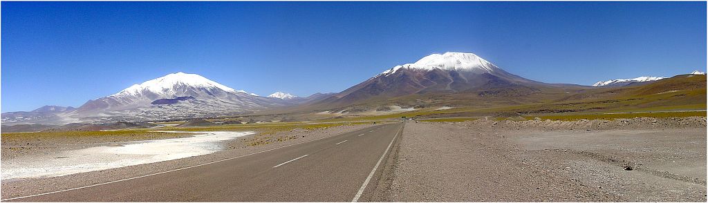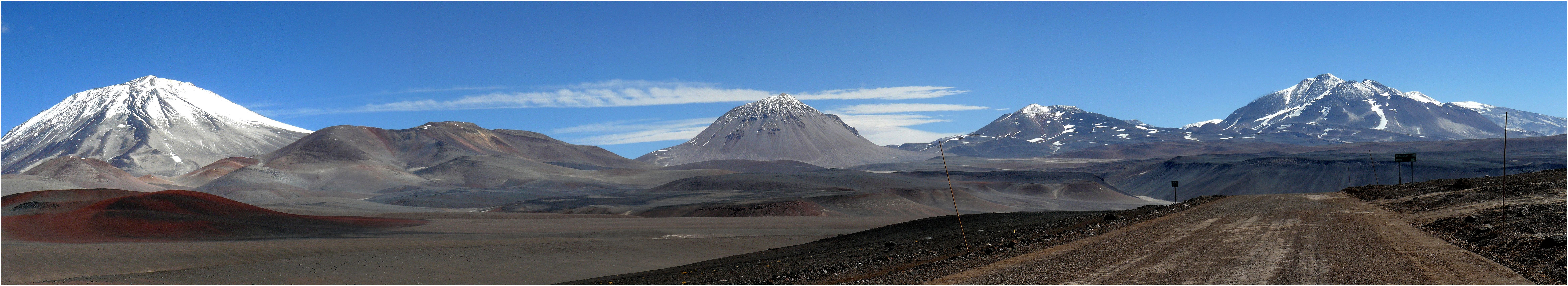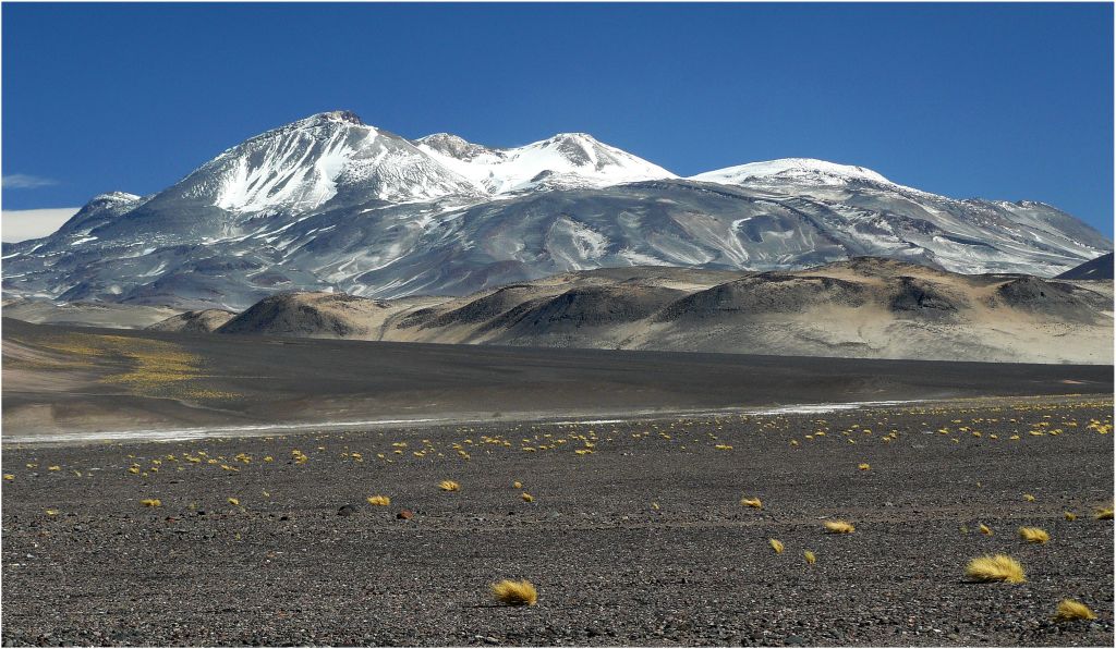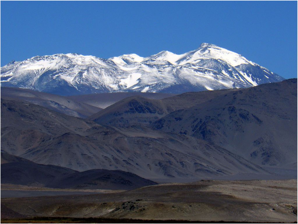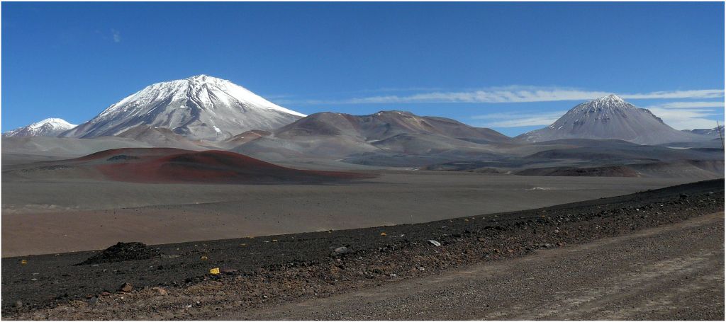 El cerro nevado de la derecha es el Volcán Ojos del Salado.