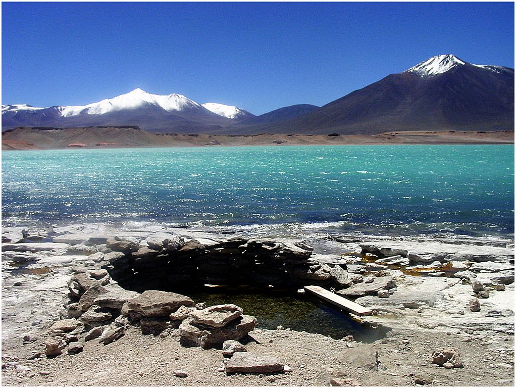 La laguna está situada a 4400 msnm y se alimenta de deshielo pero a sus orillas hay pozos de los cuales brotan aguas termales ( ver Relato NOA 2006 ).