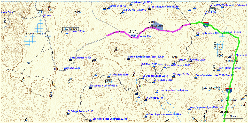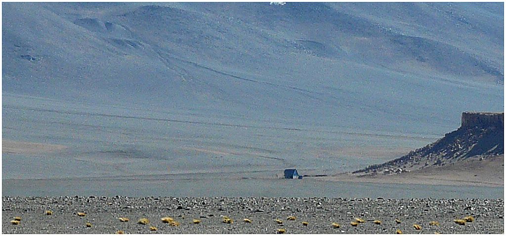 Intentamos llegar hasta un refugio ( ¿ será el Refugio Murray ? ) pero como el camino era muy arenoso resultaba peligroso encararlo con el Kangoo y su tracción simple, sumado a que la tarde estaba avanzada y estábamos a más de 4000 msnm.