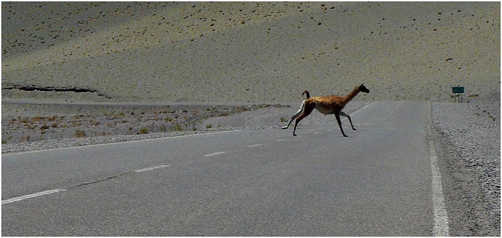 La fauna, en este caso vicuñas, se deja ver en cercanías de la ruta ...
