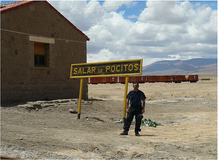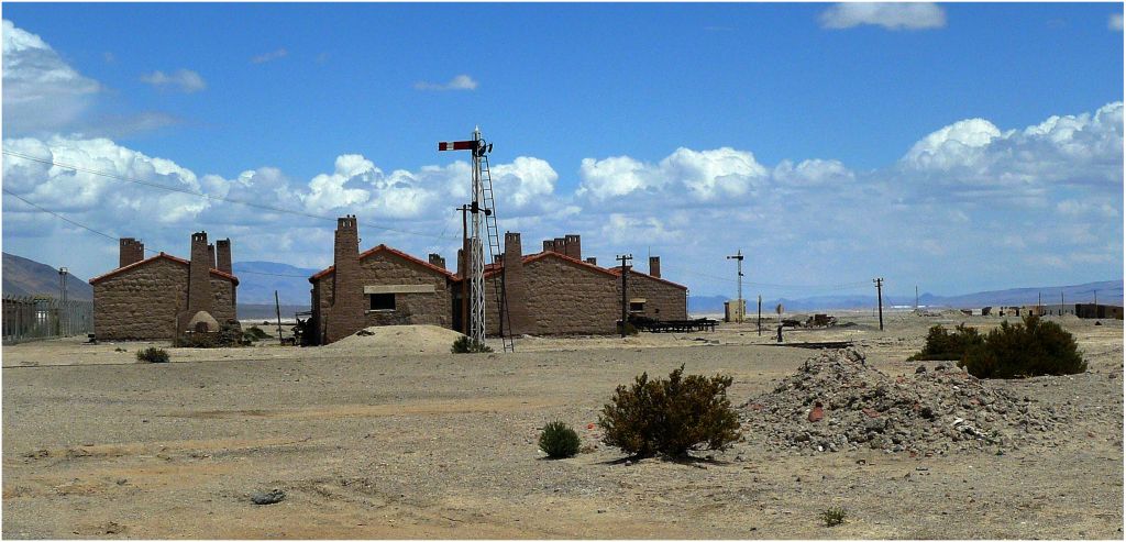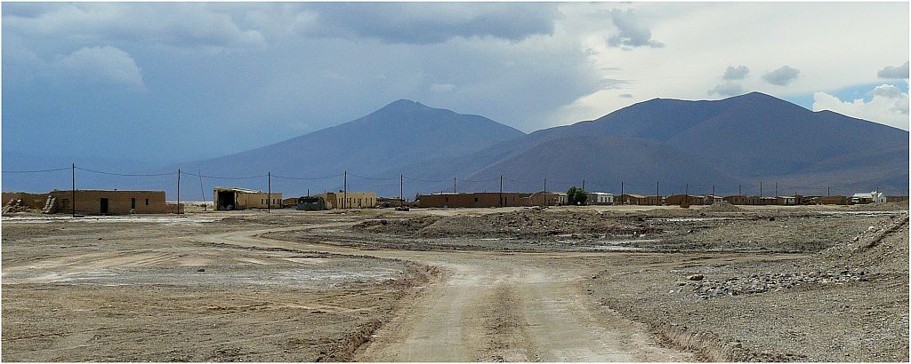 Seguimos viajando y cerca de las catorce horas empezamos a divisar el poblado de Salar de Pocitos, otrora estación del ramal C-14 del tren a Socompa - Antofagasta.