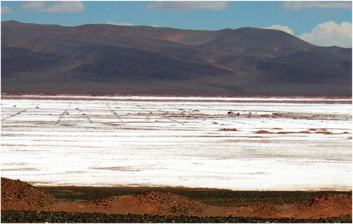 Se observa una de las puntas del Salar de Cauchari, más grande que Salar de Pocitos.