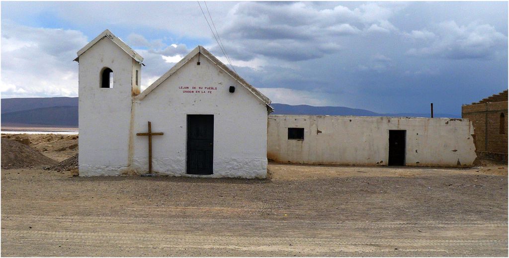 Arribamos a Cauchari, hoy deshabitado y limitado a ser solamente un cruce de caminos, con una capilla cerrada (extremo izquierdo de la foto).