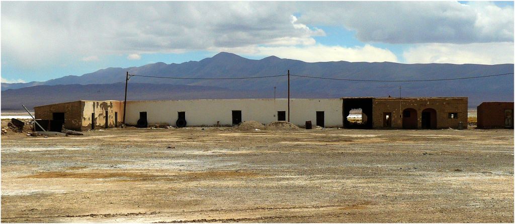 La humildad de las viviendas contrasta con las modernas instalaciones de la minera, en las cuales se envasa el gas que transportan los camiones hacia el Salar del Hombre Muerto.