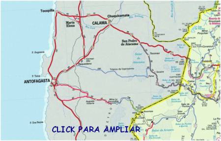 ¿ Porqué pensamos en Calama ?. Habíamos consultado una guía Turistel vieja y allí figuraba que desde esa ciudad partían las excursiones a la mina de Chuquicamata y a los Géiseres del Tatio, dos lugares que queríamos conocer.