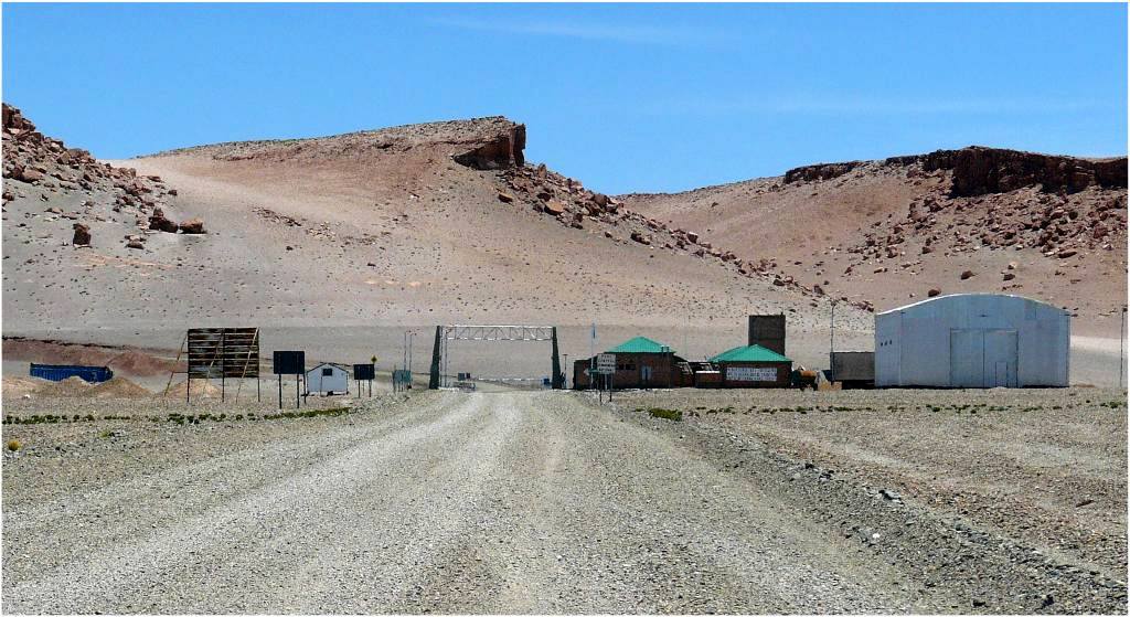 En medio de una fuerte pendiente vemos la silueta de las instalaciones fronterizas chilenas ...