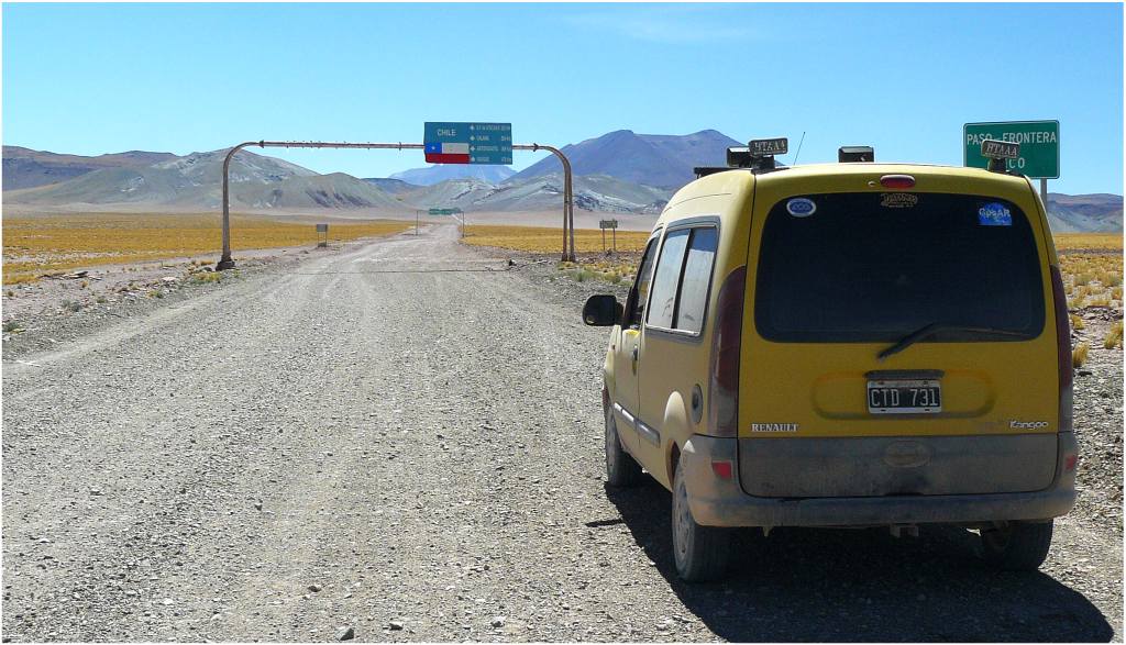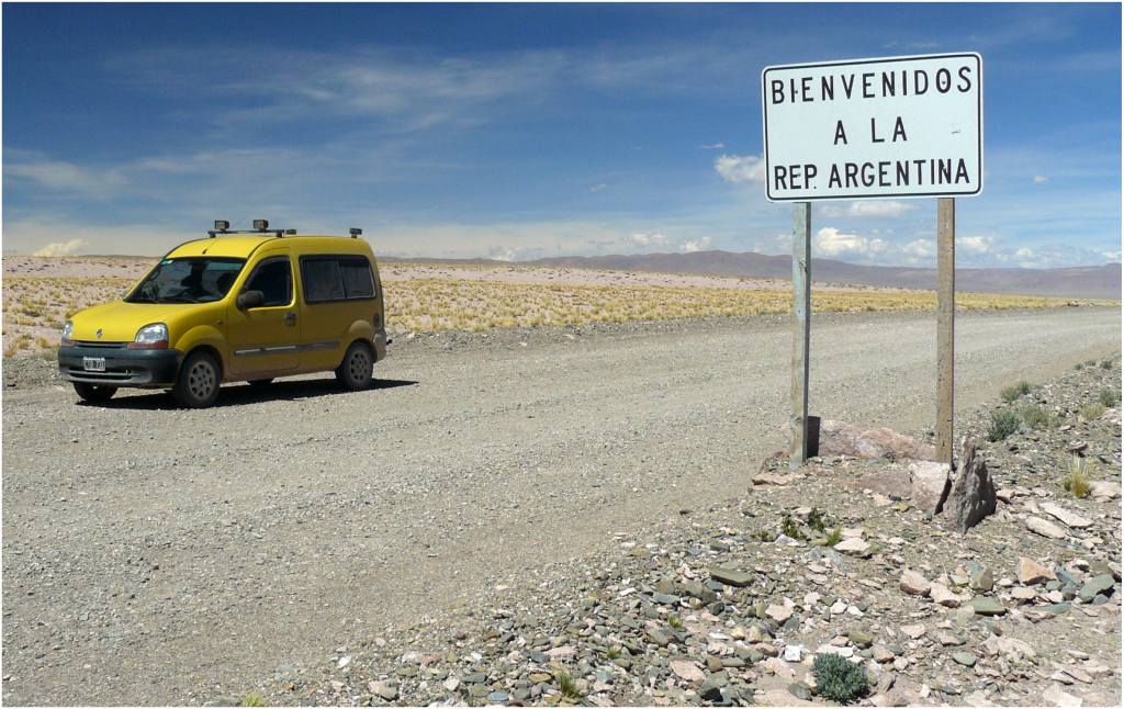 A los 11 km nos encontrábamos frente al arco, que en medio de la nada, indica el límite internacional (4100 msnm). El viento frío soplaba muy fuerte.
