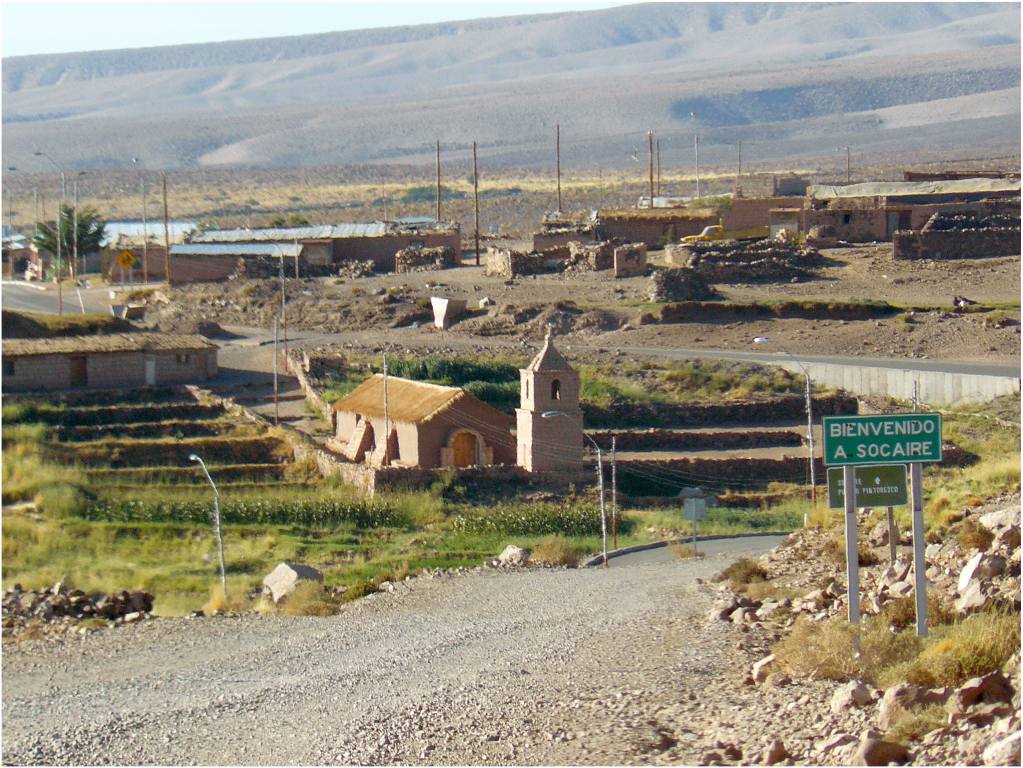 | Socaire es un pueblo localizado en la segunda Región de Antofagasta a 3500 metros por sobre el nivel del mar, 25 kilómetros de Camar, 86 kilómetros de San Pedro de Atacama y a 402 kilómetros al este de Antofagasta, además, es el último pueblo Chileno cuando uno se dirige hacia Argentina, a través del Paso Sico. Socaire es un lugar