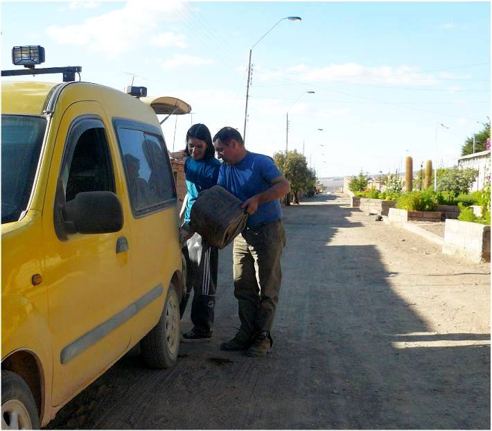 Desayuno, acomodamiento de bártulos y carga de combustible previa compra de vales en la “Muni” (así le dicen los lugareños a la Municipalidad, omnipresente en sus vidas). El combustible se almacena en tambores, se extrae con bombas manuales y mediante balde y embudo se carga en el vehículo.