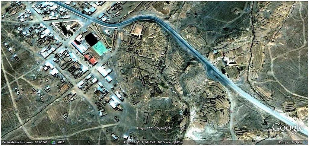 Una vista parcial del Google Earth permite ver las terrazas con cultivos ...