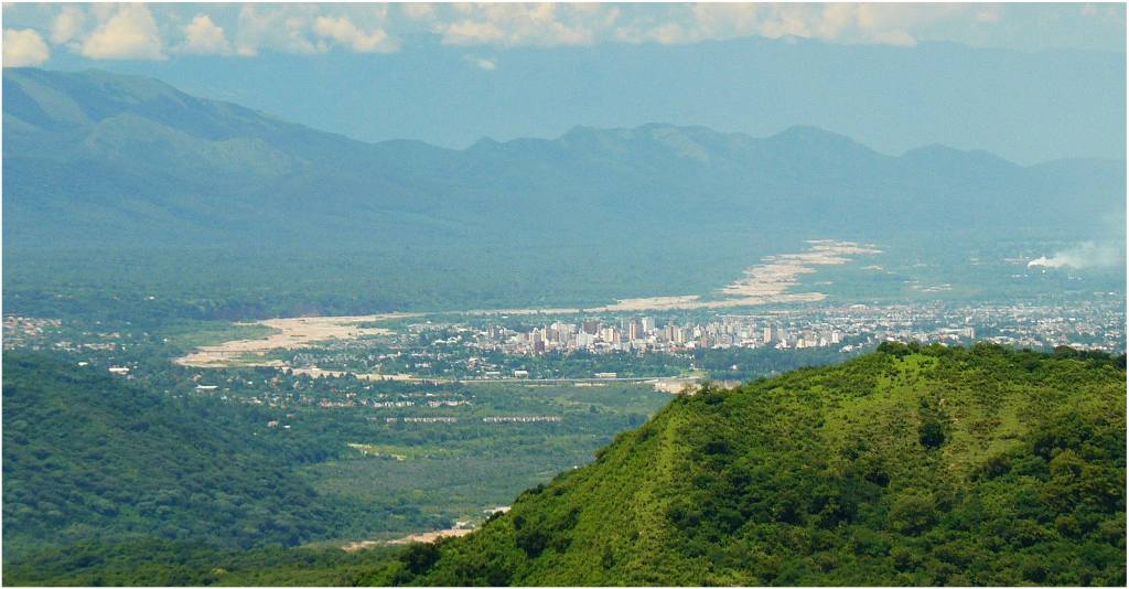 Desde la altura vemos a lo lejos la ciudad de Jujuy.