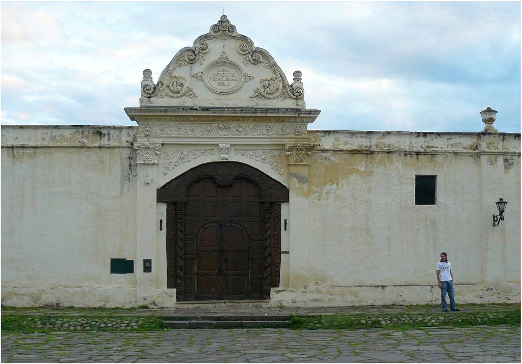 ha llegado hasta nuestros días. La decoración de ésta y las monjas que se realizaron en el frente de la Iglesia fueron realizadas por el ya nombrado Isidoro Fernández. En la nueva entrada al Convento se colocó una hermosa puerta que perteneció a la familia de Bernardo de la Cámara. Esta puerta fue realizada en madera de Algarrobo y tallada a mano por los nativos en 1762. Tiene jambas compuestas de columnas Salónicas que sostienen un curioso dintel de dos arcos, unidos en el centro por motivos de hojas y una tarjeta con la sigla de Cristo. Las laterales son de estructura similar, ubicadas por encima de las jámbas que tienen la inscripción "Don Pedro Balentín de la Cámara, año 1762". Fue colocada en el año 1847 y