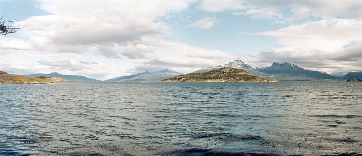 trayecto (a la izquierda) se ven al otro lado del Beagle, los picos nevados de