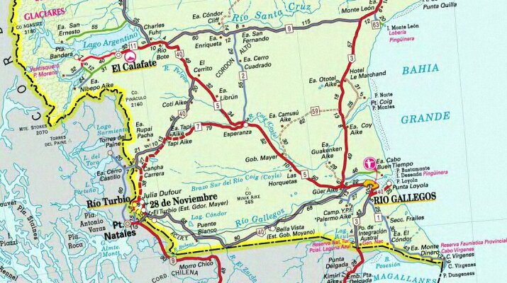 MAPA DEL SUR DE LA PROVINCIA DE SANTA CRUZ |