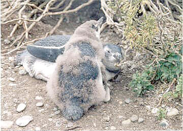 | Pareja de Pingüinos Magallánicos | Pichones de Pingüinos (por su pelaje todavía sin ir al mar) |
