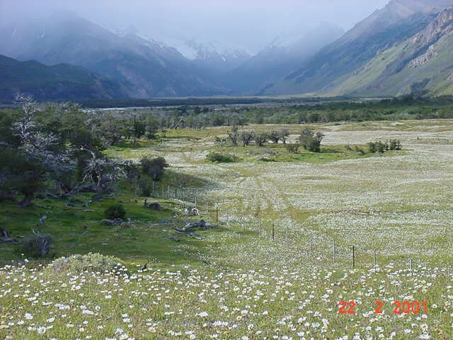 MARGARITAS DESDE LA CASA DE MADSEN . Zona conocida como La Florida y al fondo el valle hacia Lago del Desierto |