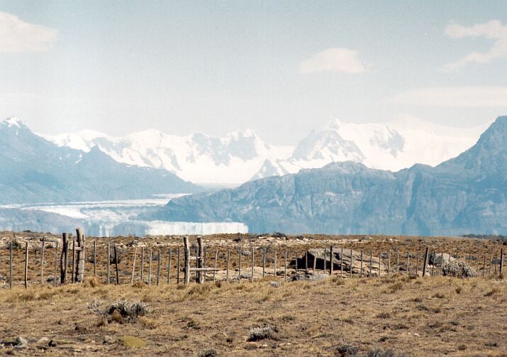 Frente del Glaciar Viedma desde el camino de acceso a El Chaltén. Al fondo el Cordón Mariano Moreno |