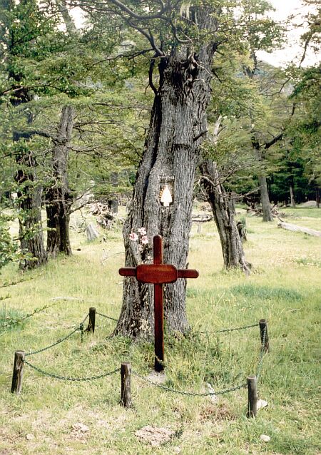 Al día siguiente amaneció feo y decidimos darle descanso a mis talones, así que fuimos en auto hasta el camping de Tito Ramírez en la Punta Sur del Lago del Desierto. Son 37 km de ripio por una ruta con hermosos paisajes que sigue el curso del Río de las Vueltas. (relato año 2000).