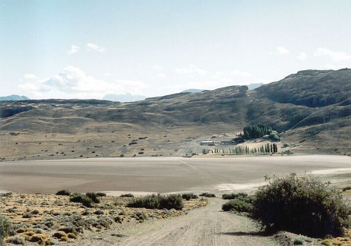Se pasa frente a algunas estancias y por el borde de una laguna que estaba seca. No sé si siempre lo estará y si todos los veranos es perfectamente transitable. En el 2002 lo era.