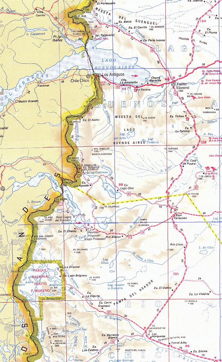 A las 1030 tomamos la RN 40 para recorrer el primer tramo de 128 km que nos llevaría hasta Bajo Caracoles. En febrero de 2002 visitamos la zona pero no hicimos este tramo porque llegamos a Caracoles desde el oeste por la RP 41 que conduce al Paso Internacional “Paso Roballos”.
