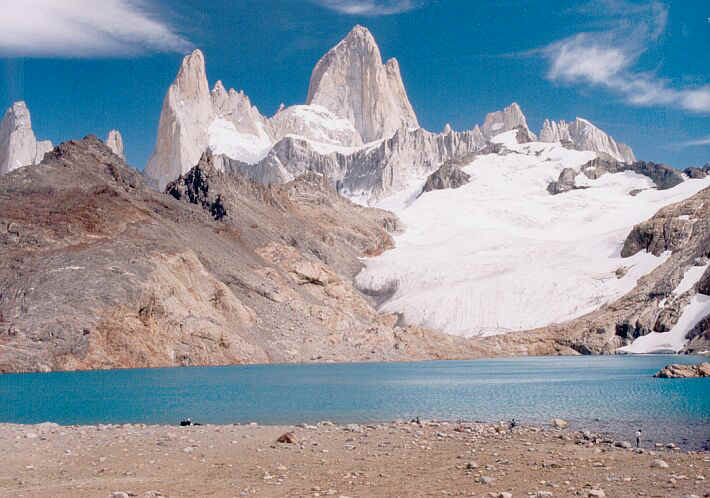 La mayor parte de los visitantes hacen en el día el trekking El Chaltén – Poincenot – Río Blanco – Laguna de los Tres – El Chaltén. Eso exige salir temprano del pueblo, caminar rápido y disponer de menos tiempo en la laguna. Nosotros hicimos ese recorrido en el año 2000.