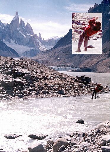 Bajamos hasta el nivel de la laguna, en el punto donde ésta da origen al río Fitz Roy.