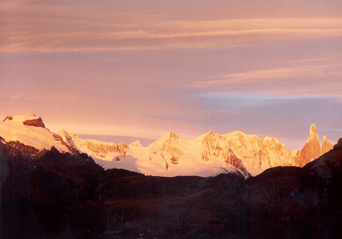 Cerro Solo, las Adelas, Torre y agujas vecinas al amanecer |