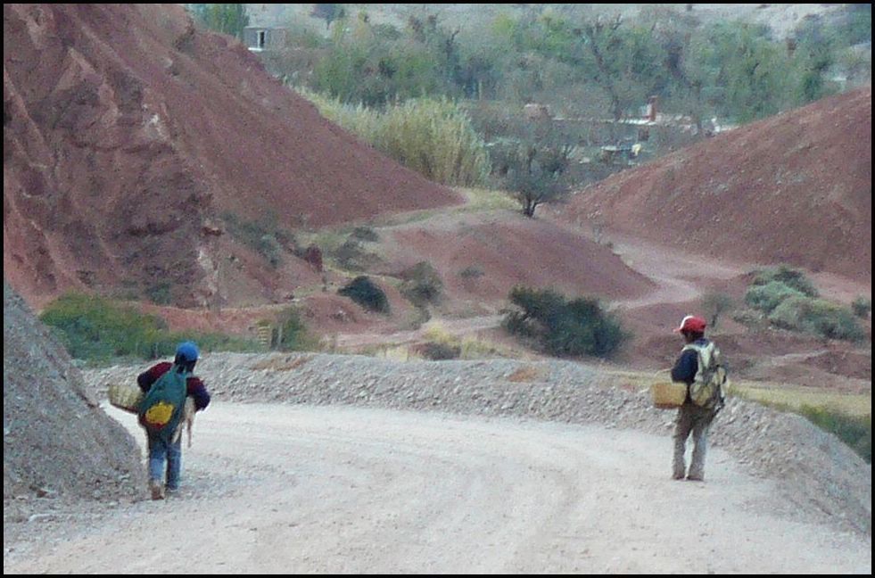 En la foto los chicos volvian a su casa, distante varios kilómetros que ellos acortan subiendo fuera de los caminos, luego de un día de trabajo.